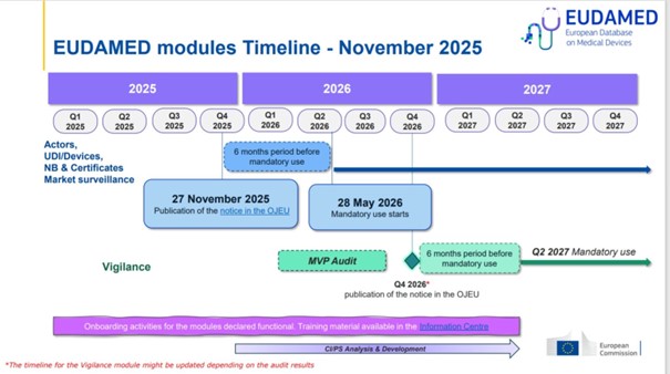 November 27-én az Európai Bizottság hivatalos közleményt tett közzé az Európai Unió Hivatalos Lapjában (OJEU), amelyben megerősíti, hogy a négy EUDAMED modul teljes funkcionalitással rendelkezik és készen áll az éles használatra.